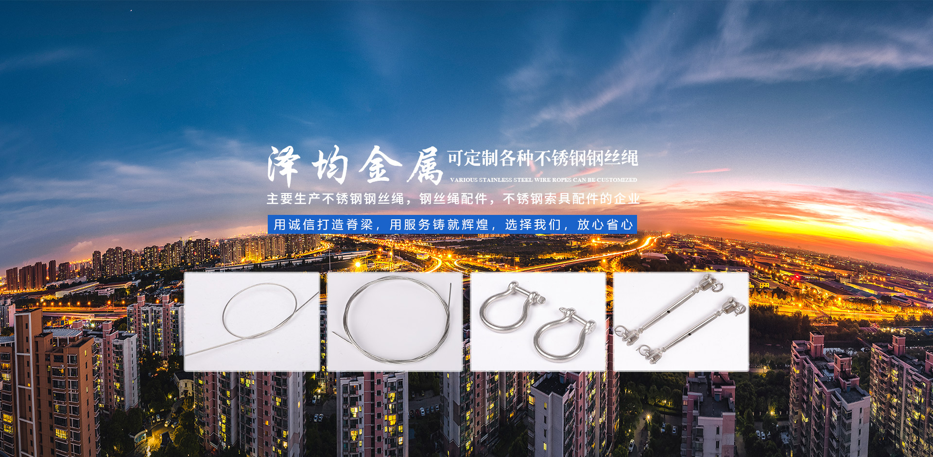 泰州市澤均金屬制品有限公司是一家生產(chǎn)不銹鋼鋼絲繩,鋼絲繩配件,不銹鋼索具配件的企業(yè)。 本廠主要生產(chǎn)各種型號鋼絲繩不銹鋼絲繩、涂塑不銹鋼絲繩、漁具鋼絲線、包膠不銹鋼絲繩、高強度不銹鋼絲繩、不銹鋼拉索、不銹鋼索具等。產(chǎn)品以304、304L、316、316L等不銹耐酸鋼為原料,生產(chǎn)鋼絲繩結(jié)構(gòu)有單股繩(即1*7、1*12、1*19、1*37)、多股繩(即3*3、3*7、6*7、7*7、6*19、......